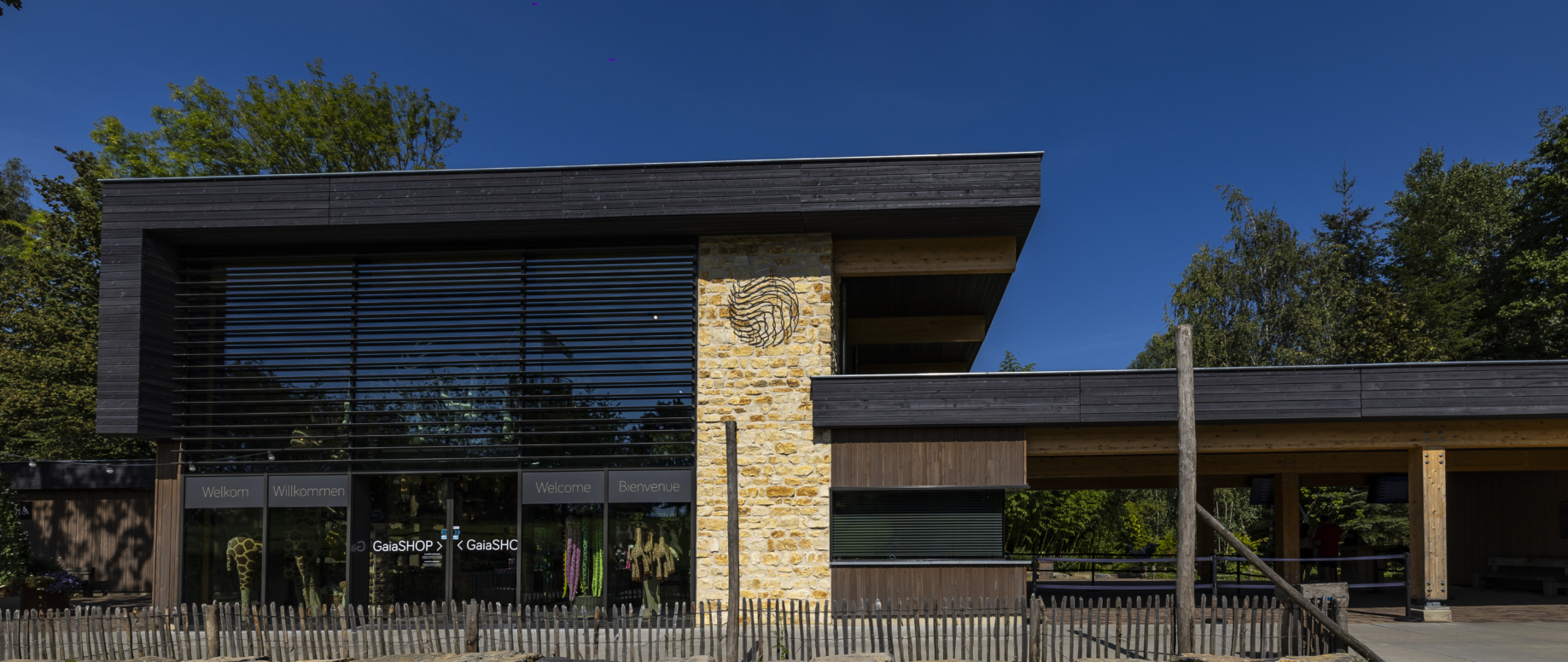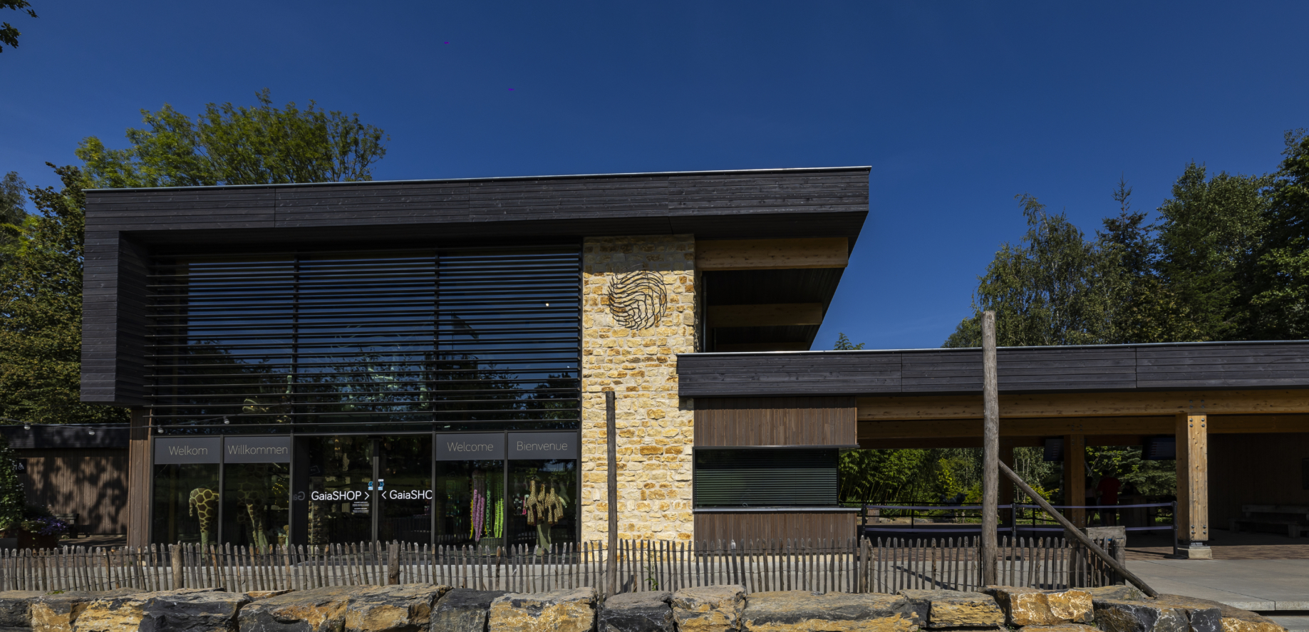 De buitenkant van het gebouw is vervolgens afgewerkt met een houten gevelbekleding met mooie accenten van natuursteen die gewonnen is uit de Kunradersteengroeve in Voerendaal. Eussen Bouw nodigt iedereen uit om een kijkje te gaan nemen en daarna een mooie wandeling door de dierentuin te maken.